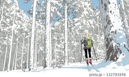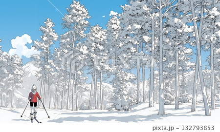 雪山でスキーをする人、ゲレンデ、スキー場、ウィンタースポーツ競技
