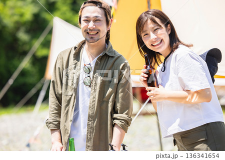 キャンプ場でキャンプを楽しむ夫婦,ファミリー,カップル