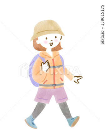 ハイキングをしている女性のイラスト