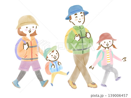 ハイキングにお出かけする家族