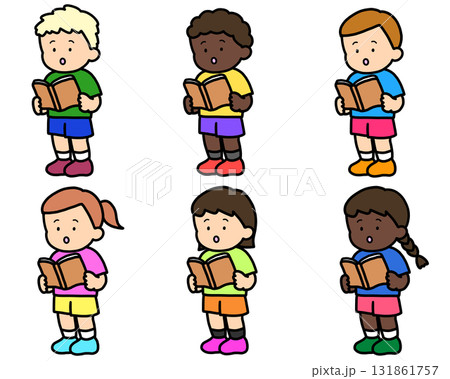 本を読む子どもたちのイラスト/読書・学習・教育素材