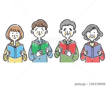 本を読んでいる4人の人のイラスト