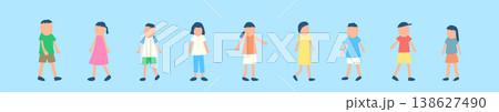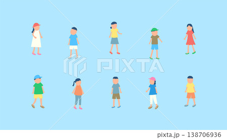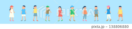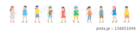 夏の外出シーン 人物セット/歩く・日常生活・家族・子ども・シニア
