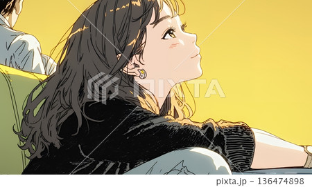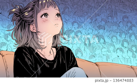 映画や演劇を鑑賞している若い女性
