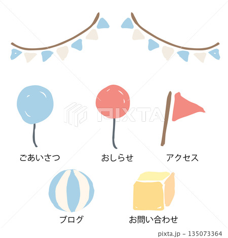たのしいサーカス|ガーランドと風船の手描きアイコンセット|幼児向け素材