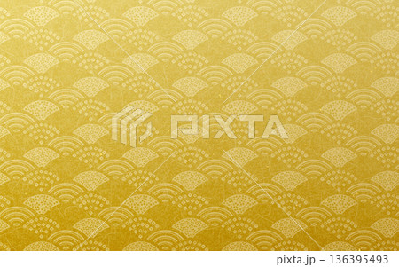 シームレスなゴールド和柄パターン。飾り青海波模様。