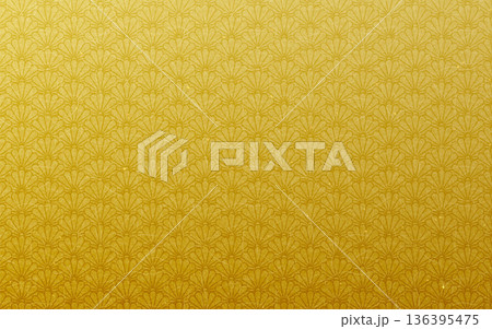 シームレスなゴールド和柄パターン。菊青海波模様。