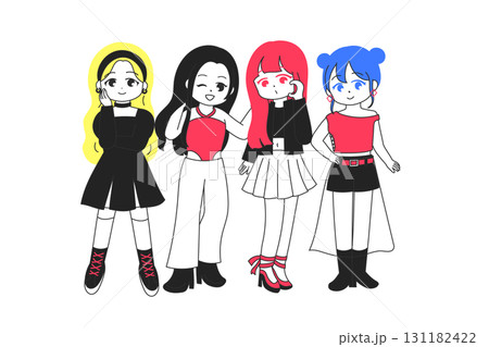 女性K-POPグループ風のかわいいイラスト カラフルver