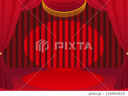 スポットライトが当たる赤いカーテンを背景にした舞台