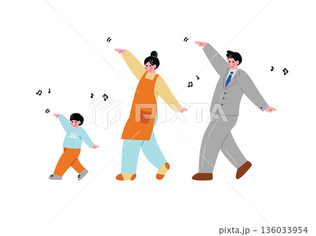 ノリノリで踊る家族のイラスト