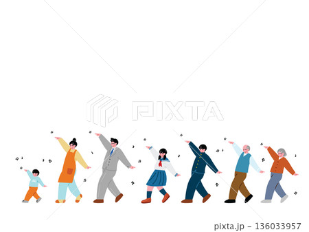 ノリノリで踊る三世代家族のイラスト