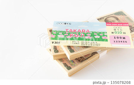 宝くじと札束 一万円札 運試し 一攫千金