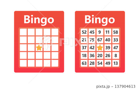 ビンゴカードアイコンセット 空白と数字入りのビンゴゲーム用カード