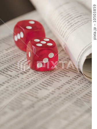Two dice on newspaper