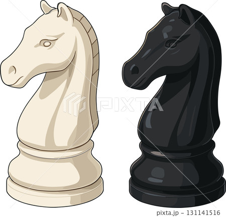 チェスの駒「ナイト」のベクターイラスト(白黒セット)