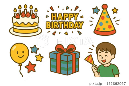 誕生日のイラストセット・カラー