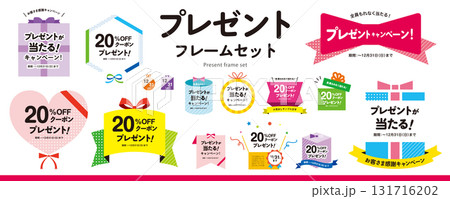 シンプルなプレゼント、ギフトのフレーム素材セット(タイトル、見出し、枠)