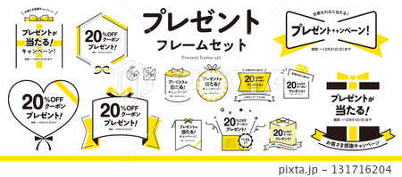 シンプルなプレゼント、ギフトのフレーム素材セット(タイトル、見出し、枠)/黄色