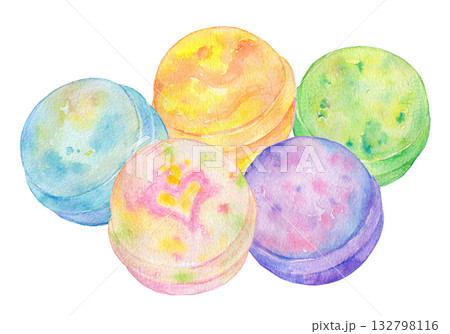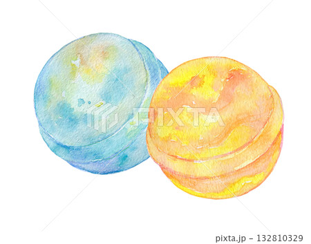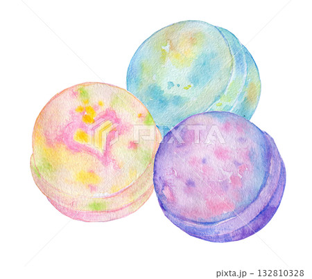水彩イラスト 手描きイラスト カラフルなバスボムセット