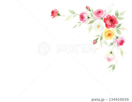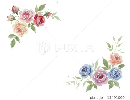 淡いピンクのバラの花の色鉛筆画イラスト 横長フレーム