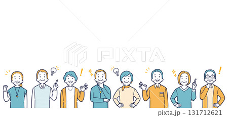 上を向いて明るい表情をする高齢者のイラストセット_見出し
