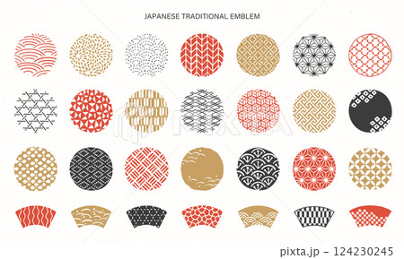 和柄のフレームとシンボルセット/手書きの和風デザイン