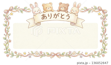 Thank You ハートを持つ動物イラスト4点セット くま・うさぎ・パンダ・りす 感謝素材