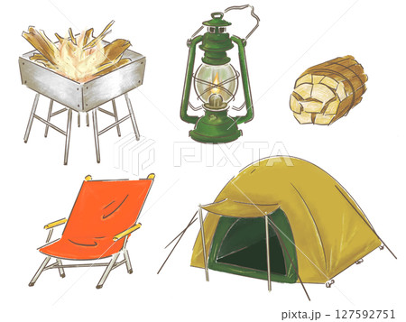 キャンプで使う道具 アウトドア用品 手描きイラスト セット販売