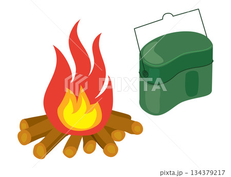 焚き火のイラストアイコン(野外・キャンプ・アウトドア素材)