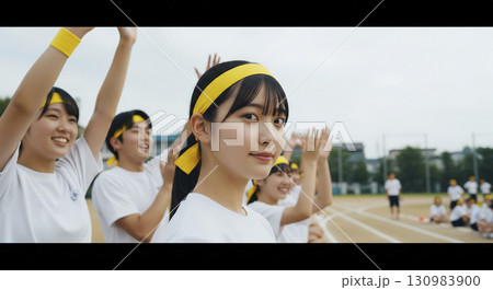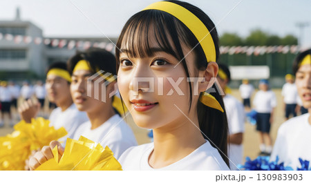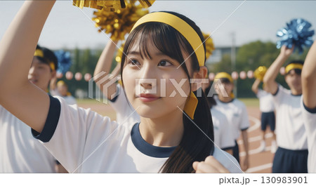 体育祭でクラスメイトと応援する姿