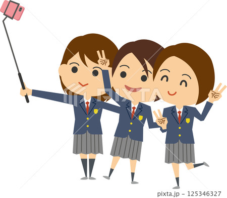 スマホで自撮りをしている女子高生のイメージイラスト