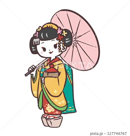 和傘を持つ舞妓のイラスト