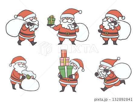 サンタクロース、トナカイ、クリスマスギフトのイラストセット