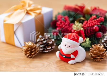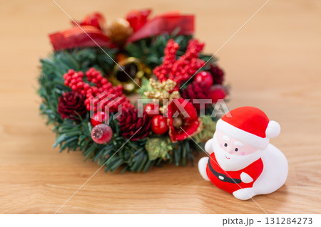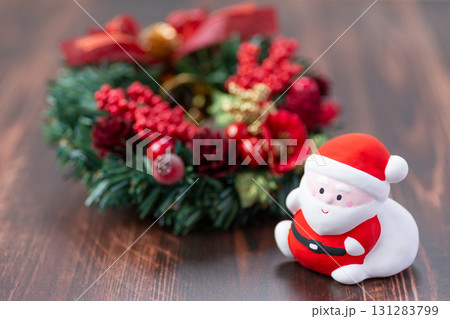 オーク樽にのったサンタさん ( クリスマスイメージ )