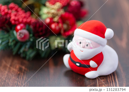 クリスマスリースとサンタクロース