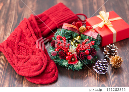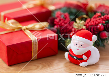 クリスマスイメージ クリスマス飾り サンタクロースとリース イメージ素材