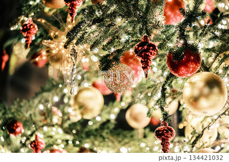 ガラスのクリスマスツリーとキラキラ輝くゴールドスター