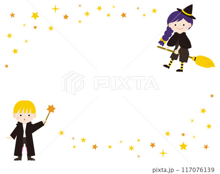 かわいい二人の魔法使いのいるハロウィンのフレーム