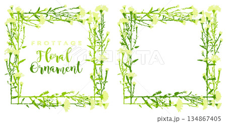 黄色い花の上下フレーム背景・草花の装飾デザイン素材