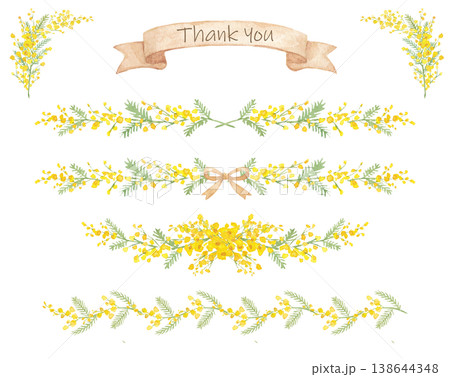 水彩ミモザのボタニカルラインセット
