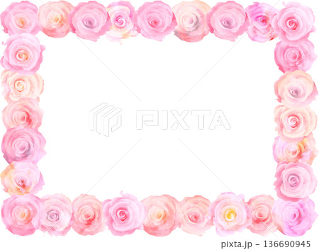 水彩風ピンクのバラのフレームイラスト・長方形