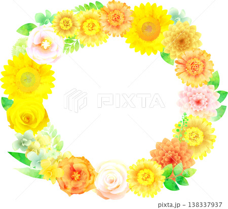 花のフレーム・黄色系・円型