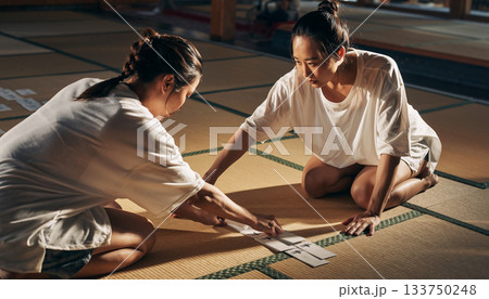 カルタ遊びする子供
