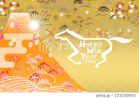 2026年 午年 和モダンな富士山と馬の年賀状