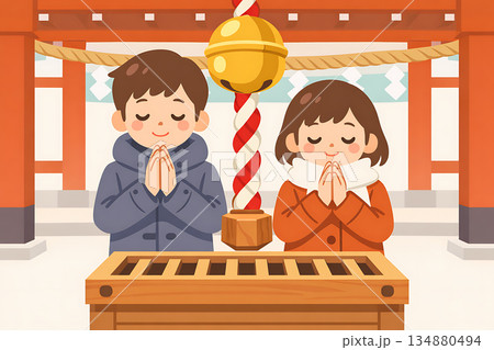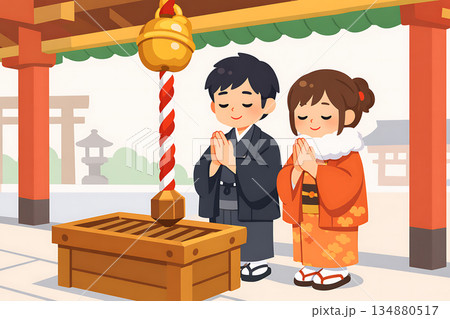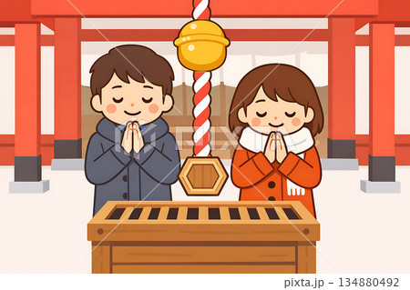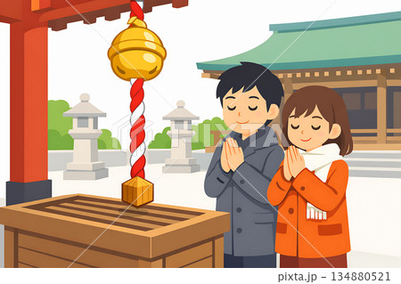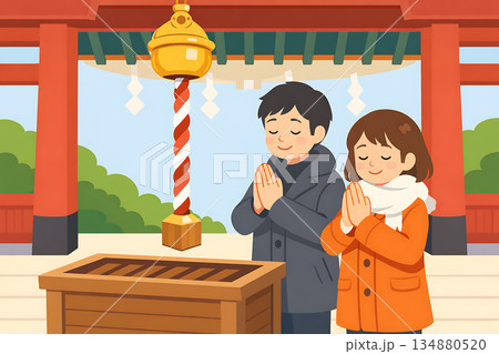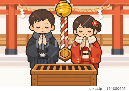お正月の初詣のシンプル背景イラスト