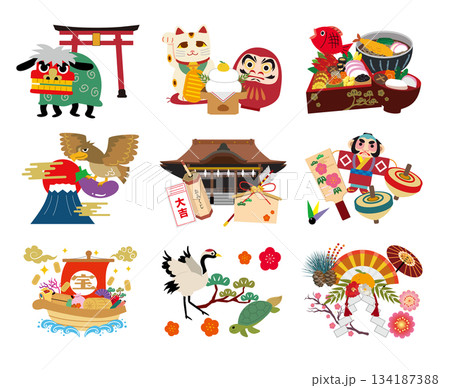 日本の正月イラスト素材セット