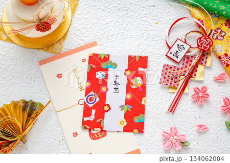お正月素材・ポチ袋と赤い背景
