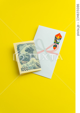 お正月のお年玉 お年玉袋と一万円札