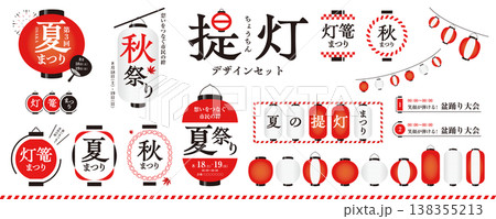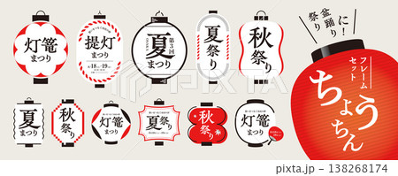提灯のデザイン素材セット/祭り、和風素材、フレーム、タイトル、見出し