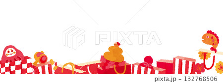 お正月・新春のイラスト素材のセット あしらい フレーム 飾り 装飾 年賀素材 新年 正月飾り 枠 花
